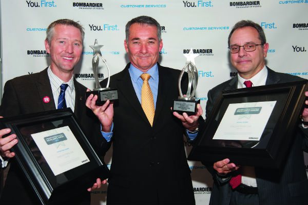 Left to right: Execujet’s Chris Milligan and Nick Weber celebrate their award with Stan Younger from Bombardier.